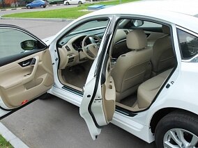 Если черный цвет придает автомобилю статусности, а белый – эффектности, то бордовый окрас делает Nissan Teana элегантной. Агрессивные нотки в дизайне прослеживаются в виде низкой крыши, треугольной формы головной оптики и массивных бамперах – все это привлекает внимание окружающих. Впрочем, «Теана» остается «Теаной», поэтому также демонстрирует выразительные кузовные линии и некоторый налет лоска, который выражается хромированными элементами. Этот седан можно назвать компромиссом между юношескими амбициями и деловой сдержанностью – Nissan будет уместно смотреться как на парковке делового центра, так и возле входа модного ночного клуба.